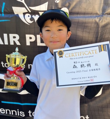 パームアカデミー生の森柊朔選手が、Growing 2025 関東地区予選 神奈川 横浜 緑 12月 11歳以下男子シングルス優勝しました。