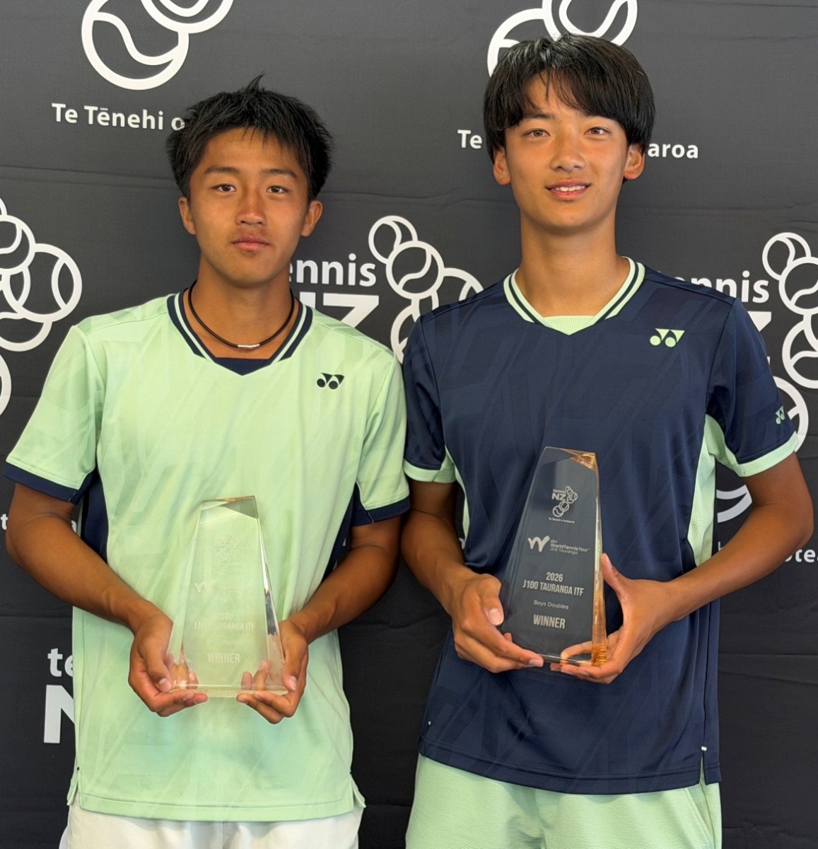 パームアカデミー生の大垣心太郎選手(ペア香川荘太選手)が、ITF WORLD TENNIS TOUR JUNIORS J100 TAURANGA J100 PAPAMOA(1月20日~25日 in Tauranga, New Zealand)男子ダブルス優勝しました。