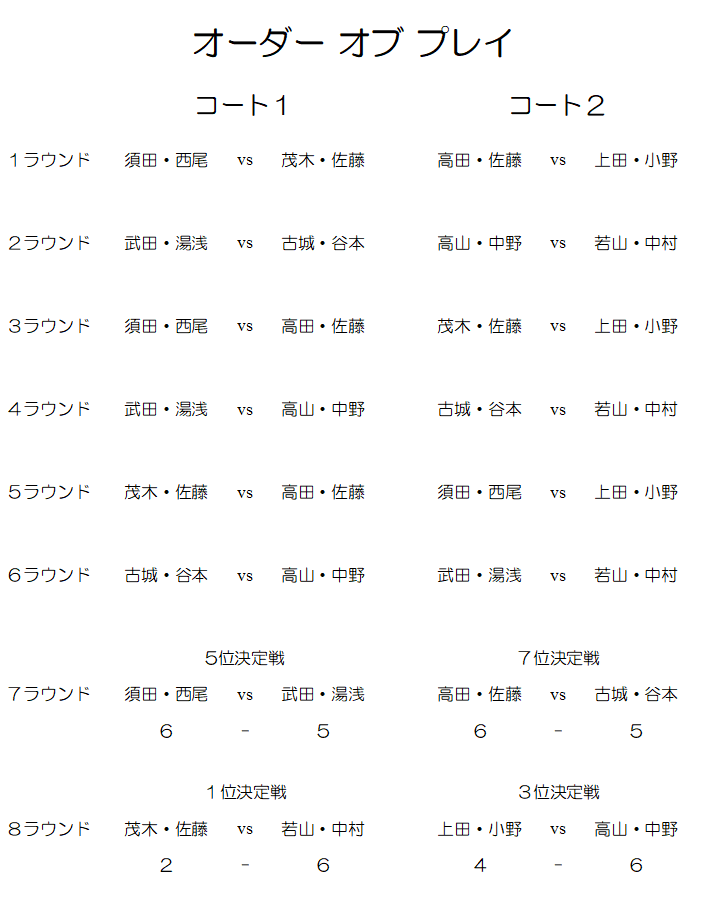 【一般】PISC One Day Women’s Doubles (4/16)結果